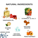 Ingredients: Grapeseed Oil, Amino Acids, Natural Keratin, Organic Calcium, Safflower Oil, Vitamin A, Vitamin D, Sesame Oil, Vitamin B-5, Vitamin E, Natural Panthenol, Thymol, Methyl Glucose Ether, Peach Extract