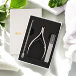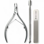 The Cuticle Nipper delivers clean, sharp cuts to remove excess cuticles with ease. The Dual-End Cuticle Pusher helps gently shape and push back cuticles, while the Nano Glass Nail File smooths and seals the nail edge for a polished finish that lasts. Together, these tools provide a complete solution for maintaining healthy, well-groomed nails.