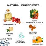 Ingredients: Grapeseed Oil, Amino Acids, Natural Keratin, Organic Calcium, Safflower Oil, Vitamin A, Vitamin D, Sesame Oil, Vitamin B-5, Vitamin E, Natural Panthenol, Thymol, Methyl Glucose Ether, Orange Essential Oil
