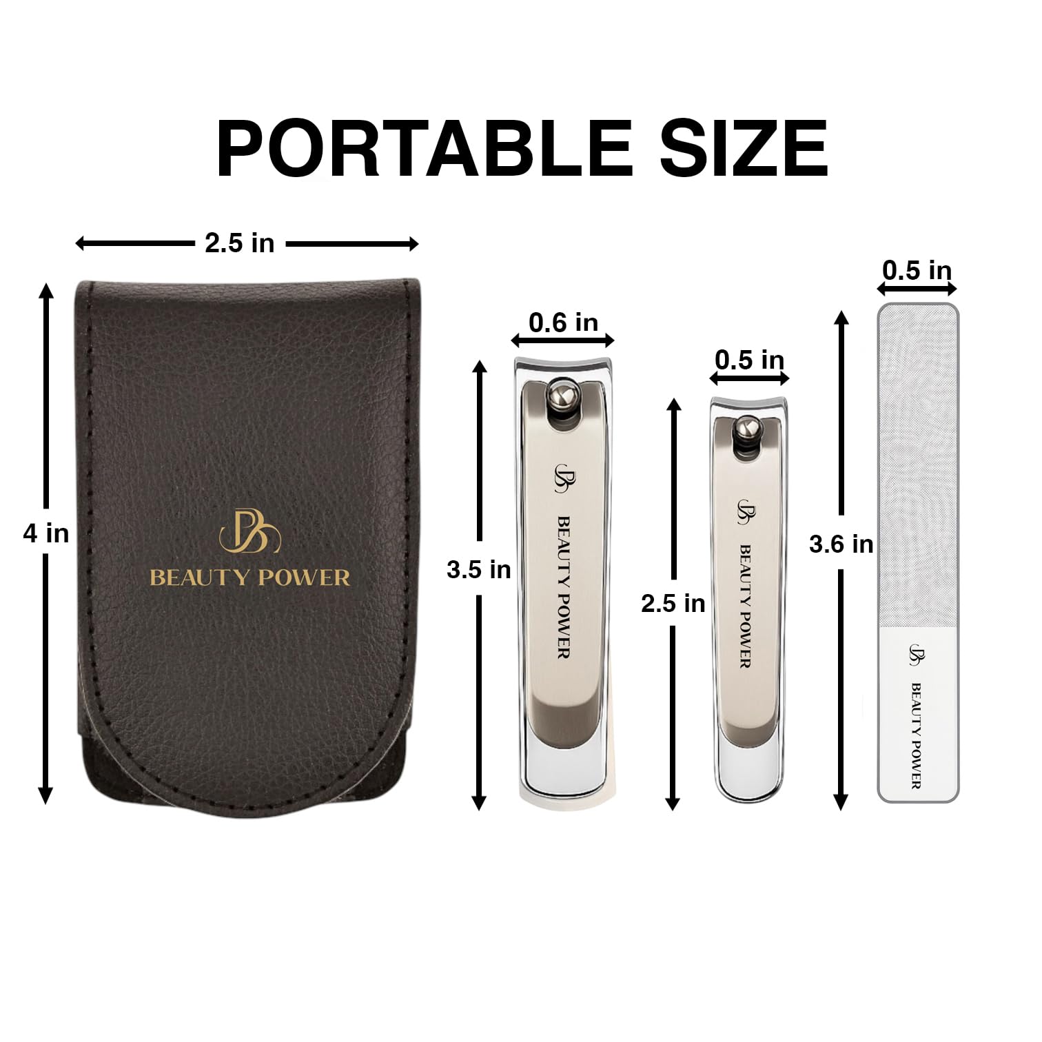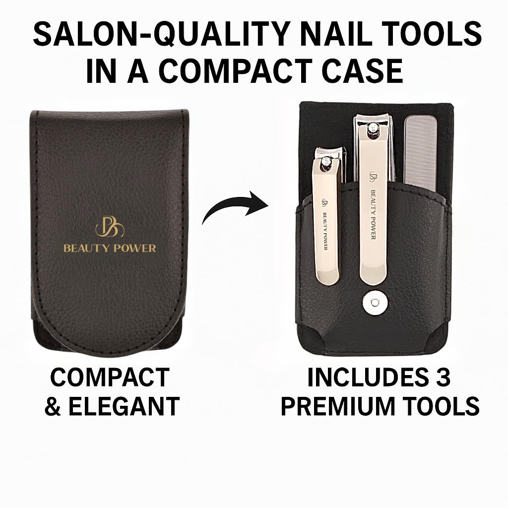 Elevate your grooming routine with the Beauty Power Nail Clippers Set 3-in-1, thoughtfully designed for precision, durability, and style. Encased in a sleek black PU leather travel case, this set combines everyday functionality with a touch of luxury, making it perfect for both home use and on-the-go care.