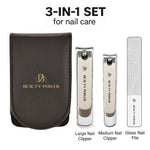 Nail Clippers Set 3 in 1 in Black PU Leather Travel Case – Beauty Power