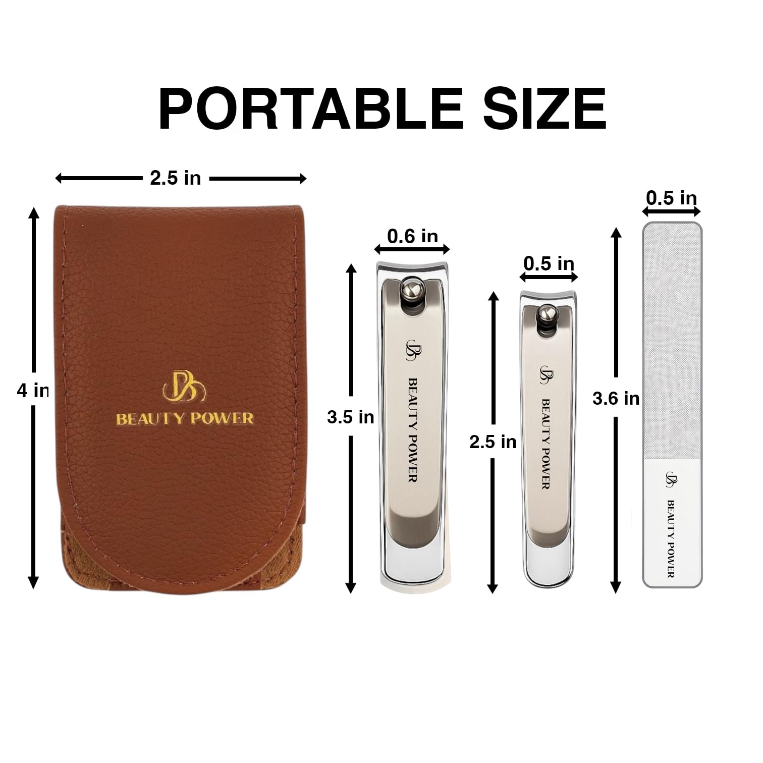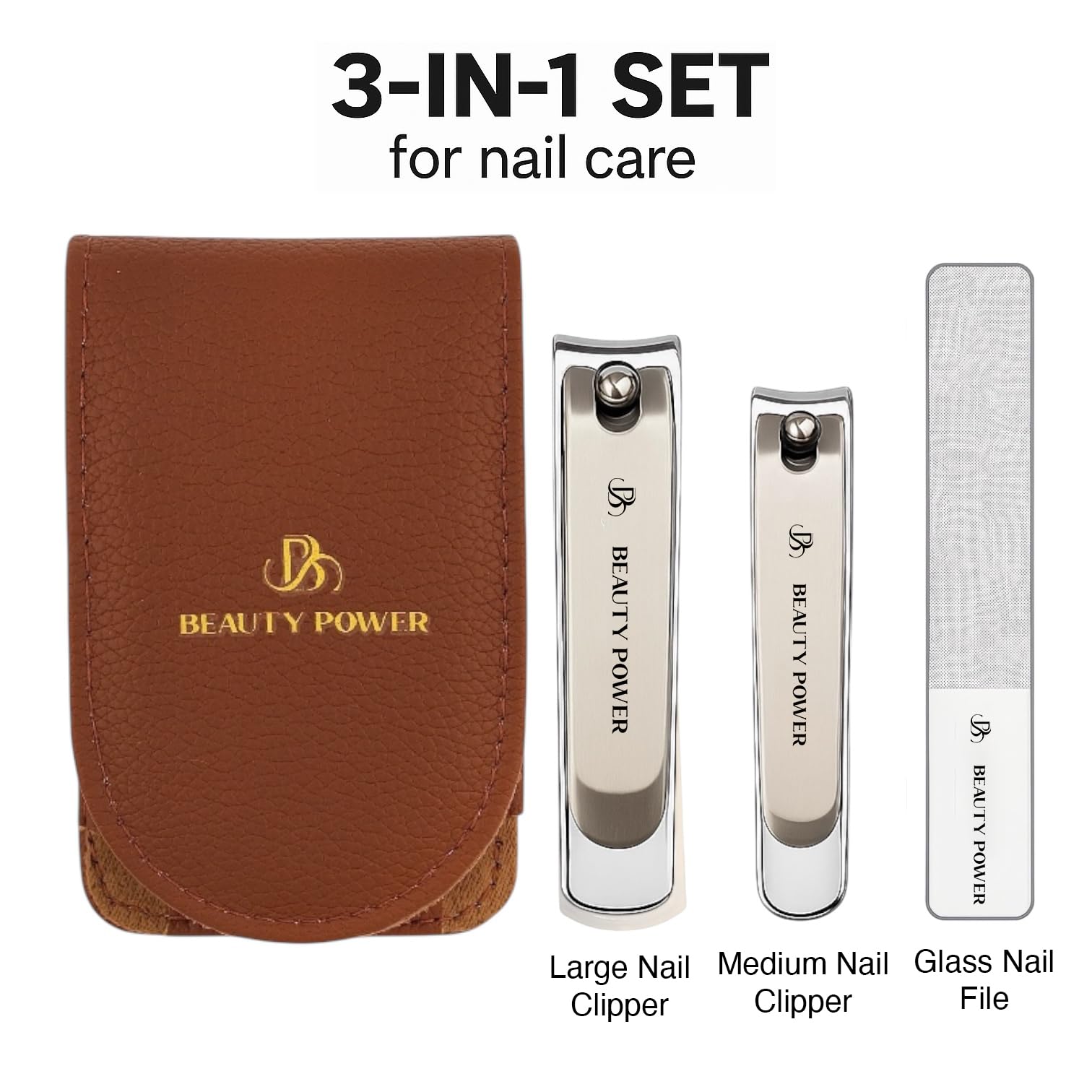 Nail Clippers Set 3 in 1 in Brown PU Leather Travel Case – Beauty Power