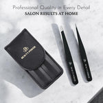 Professional Ultra Precision Tweezers Set – Slant & Point Eyebrow Tweezers with Black Travel Case